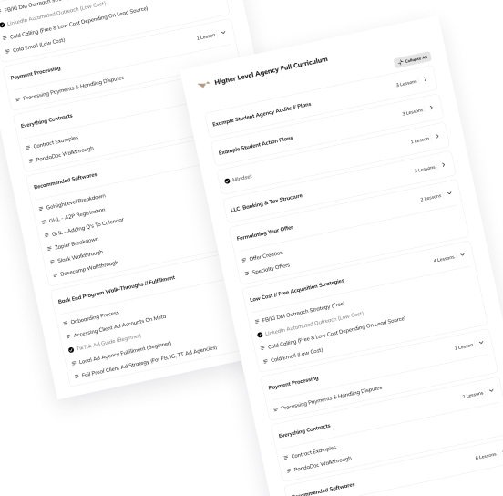 You’ll also get full access to the entire training library. These are the exact systems, frameworks, and operating procedures used to build and scale agencies, from acquiring clients to mastering sales, building delivery systems, hiring your first team member, and increasing profitability. No fluff. Only what works in the field.